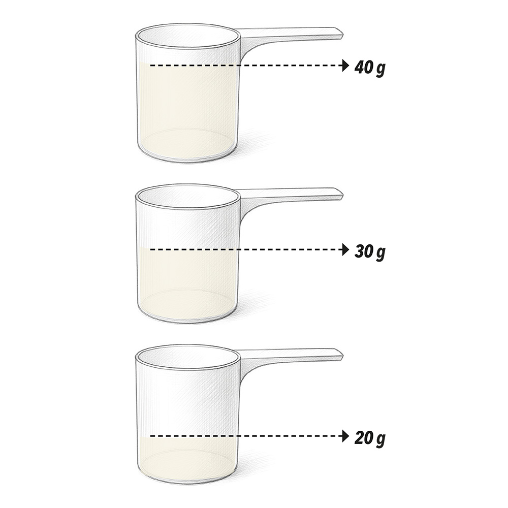 - För dig som förbränner +3 000 kalorier/dag: 40 g blandas med 3 dl vatten